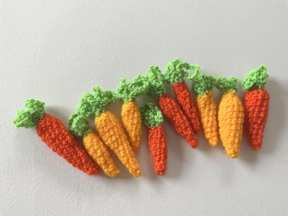 Streudeko für den Ostertisch oder fürs Osterkörbchen: 5 Karotten und 5 gelbe Rüben, Höhe 8 - 10, 5 cm, Breite 2 - 3 cm, 5 € für Selbstabholer.